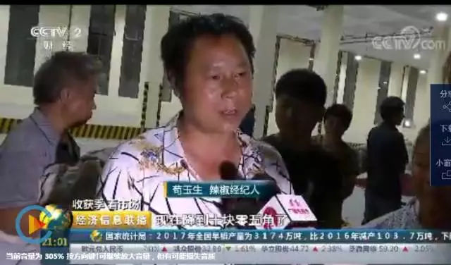 而虾子辣椒经纪人苟玉生说:“今年辣椒的价格要比往年上涨一点,开始上市的时候是13元/斤,不过现在已经降到10.5元/斤了。”由于天气的影响,今年的产量有一些下降,不过有一些大户手上能够流转的辣椒就有几千吨,销售辐射全国,甚至卖到了国外。